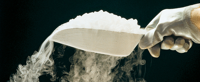 Eine besonders schonende und innovative Technologie zur Reinigung von Oberflächen ist das Strahlen mit Trockeneis (Kohlenstoffdioxyd CO2). Dabei wird der zu entfernende Belag auf den Oberflächen in Sekundenbruchteilen schock-gefroren und dadurch spröde. Das Trockeneis gelangt so unter die zu entfernende Schicht, wo es augenblicklich verdampft. Dabei vergrößert sich das Volumen schlagartig und sprengt den Belag förmlich von der Oberfläche.
